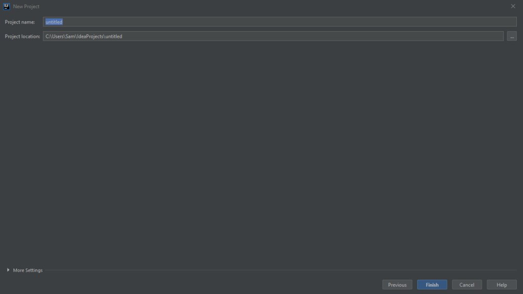 Then hit next until you reach the project naming screen: