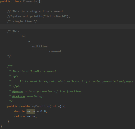 The last thing we’ll be covering is how to comment your code. Java has three different types of comment: