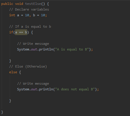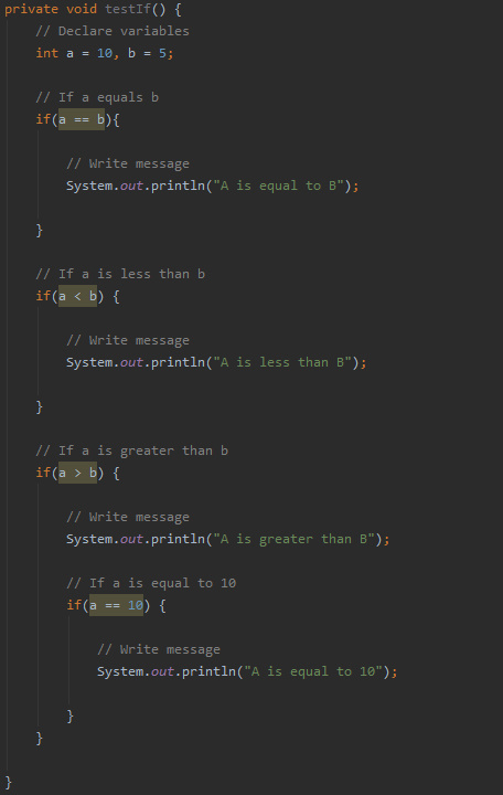 Below is an example of an “if” statement. It checks if the condition is true, and if it is, it executes the code in its block.