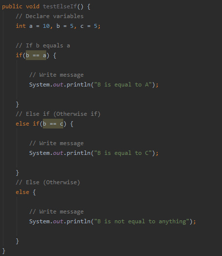 - else if – This can also be used in conjunction with an if statement, and can be used to check a second condition if the prior checks have failed.