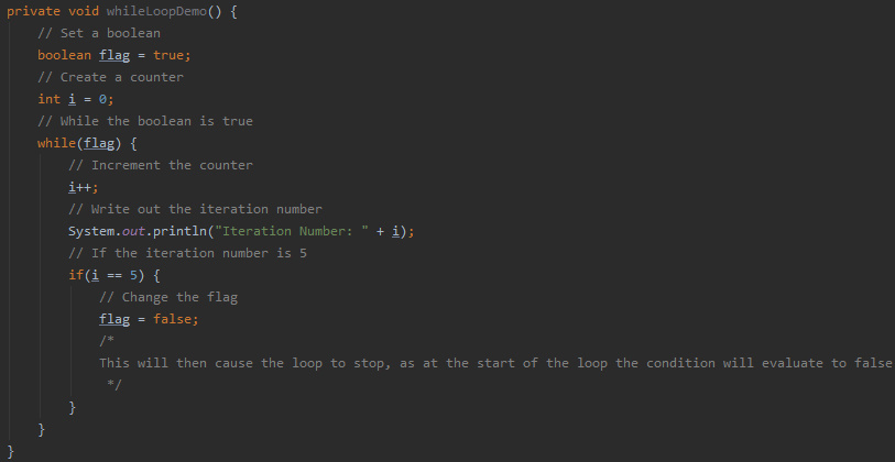As you can see the loop will keep iterating until the boolean it is checking is updated.