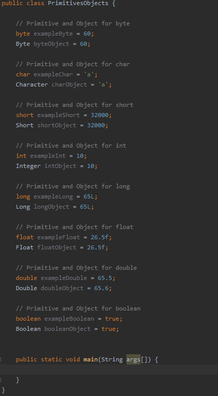 The benefits of this are that these object will work with the abstract “Object” class in Java which means you can create a collection with various data types packaged together, but we’ll come to that later.