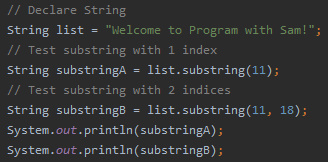 You can also get the substring of a string by treating the string as essentially and array of characters.