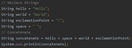 Java allows you to really easily concatenate strings, and this is exceptionally useful when building your applications.