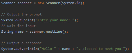 But how would be get user input in the console? This can be done using a Scanner object.