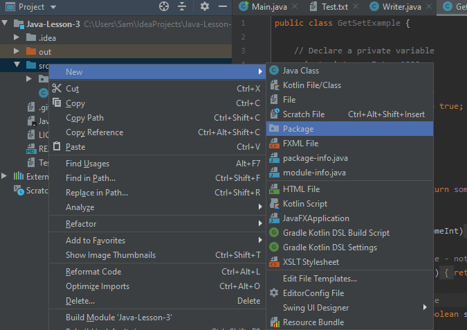 Today we will be covering the creation of classes and then using them in combination with each other. Firstly, we’re going to want to create a package in the IDE. You can do this by right-clicking the “src” directory in the project exporer and selecting “new->package”.