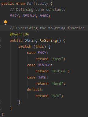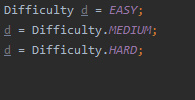 It defines three difficulty levels; easy, medium and hard. We can then refer to the constants like so: