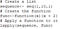 R has a function called “apply” which is the preferred way of implementing looping. It can seem a bit weird at first so let’s examine how the function works.