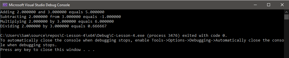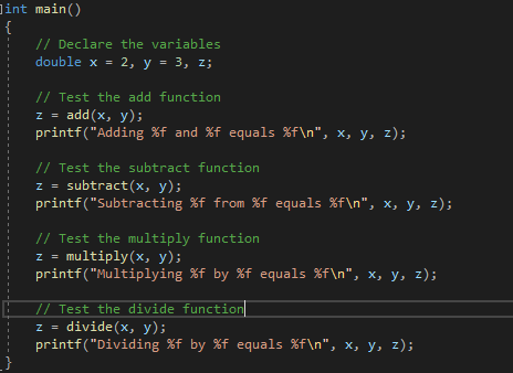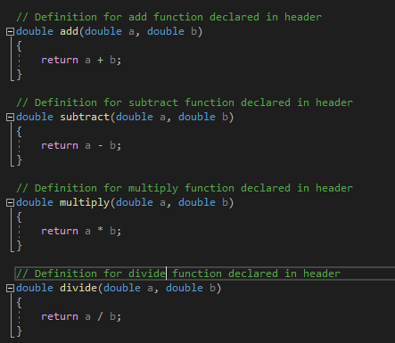 With the header file created we can now declare some functions. We’ll declare the four basic mathematical functions for simplicities sake: