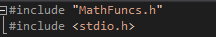 Now that we’ve created the header file and written the function bodies, we’re ready to test using this header file. To do this, we use the “#include” statement as we did previously, only this time, instead of using “<>” to contain the library name, we’re going to use regular speech marks.