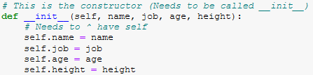 Then we’ll need to write the constructor. In Python, this is a little different to any languages we’ve seen previously: