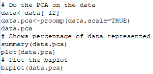 Once the data is read in, it’s possible to do a lot with it. We’ll start with PCA, which essentially reduces dimensionality by combining attributes to form principle components. These principle components then represent a percentage of the data.