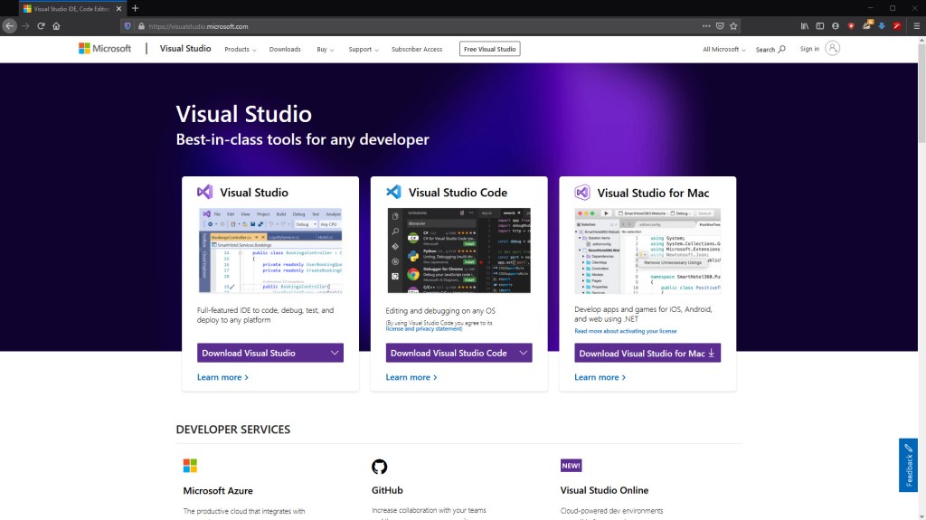Firstly, we’ll need an IDE to make our C++ projects in. For this we’ll use the Community Edition of Visual Studio, found here: https://visualstudio.microsoft.com/