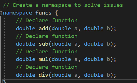 In here, we’re going to declare the functions, for this tutorial, we’ll do the mathematical functions again: