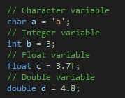This time we’re going to be looking at the variable types available in C. In C we have access to four main variable types:
